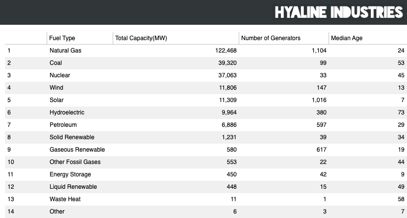 It's worth taking a second to look at what actually makes up PJM's existing generation, so here's a nice little table for us:
