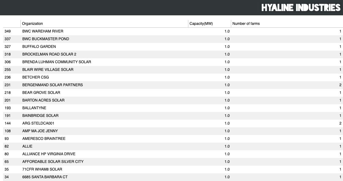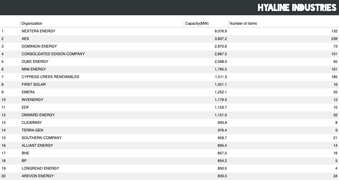 Previously, we talked about how solar power is growing spectacularly. So the question arises: who is building all these solar farms, and why? Let's pop open Hyaline and have a look around to see what we can find out.