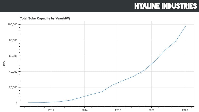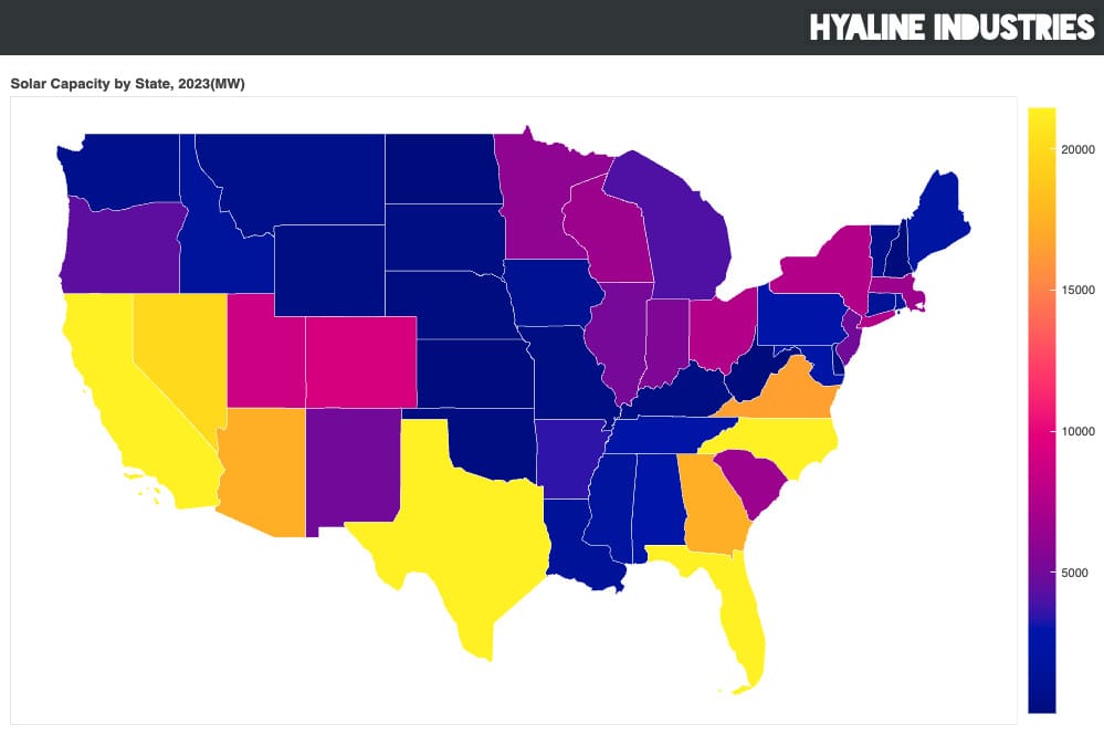 But that answer is unsatisfying. What if the answer to coal's demise doesn't lie in coal itself, but in the larger world of power? To start down that path, let's crack Hyaline back open and have a look at the United States' solar power.