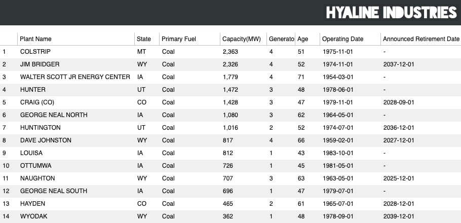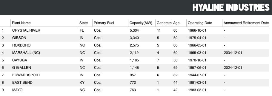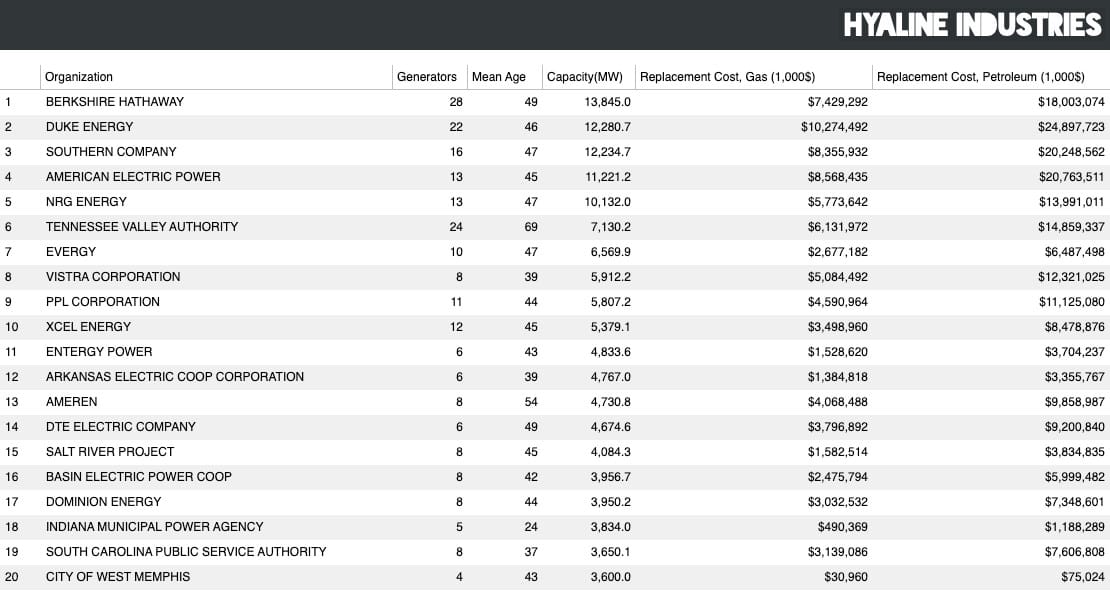 Last time, we talked about what's happening to coal generators in the U.S, and we quickly found that they were getting old, and nobody was building any new ones because they are too expensive. That naturally leads to the question: Who still owns coal, and what are they doing with it? Once again, let's pop up Hyaline and get cracking.